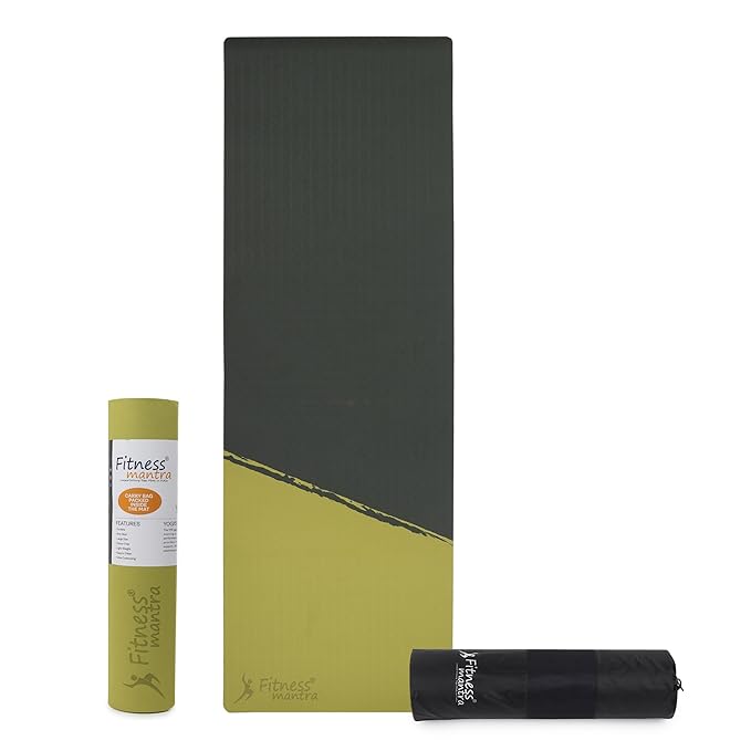 Fitness Mantra® TPE 8mm Cross Color Anti-Slip Yoga Mat with Cover Bag for Gym Workout and Yoga Exercise for Men & Women Fitness| 1 Piece| With Cover Bag| Thickness 8mm| Army + Lemon|